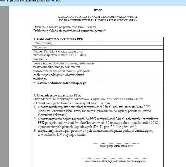 Rezygnacja Z Ppk Wzor Deklaracji Rozporzadzenie Infor Pl